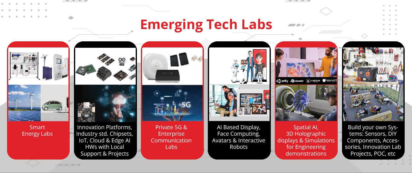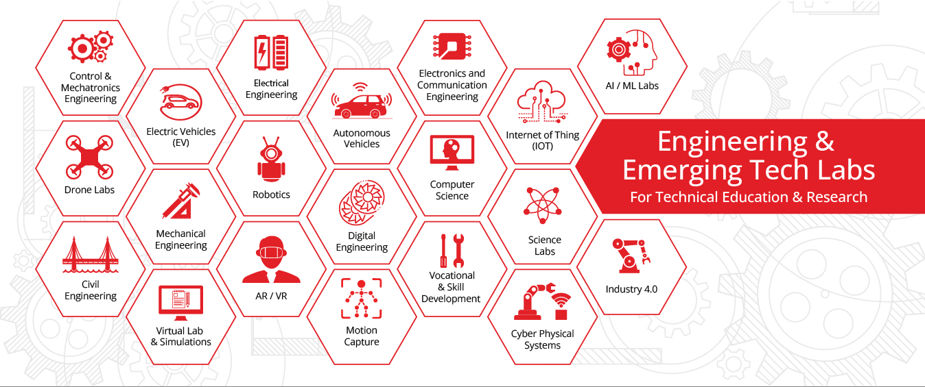 Advanced lab setups and equipment to support practical learning in core engineering and emerging technologies like Ai, Autonomous Vehicles, IoT and Robotics.